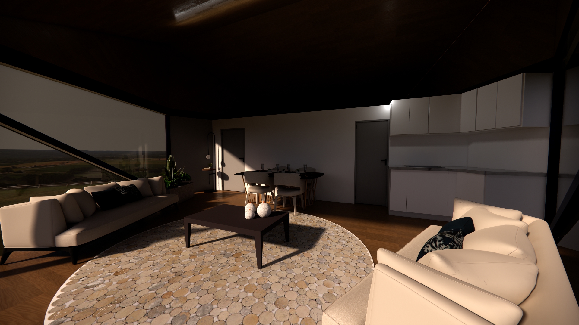 Doğal ahşap dokulu iç mekan, modern yaşam ihtiyaçlarına cevap veren donanım. Ankastre mutfak, şık banyo ve konforlu yaşam alanları standart olarak sunulur.